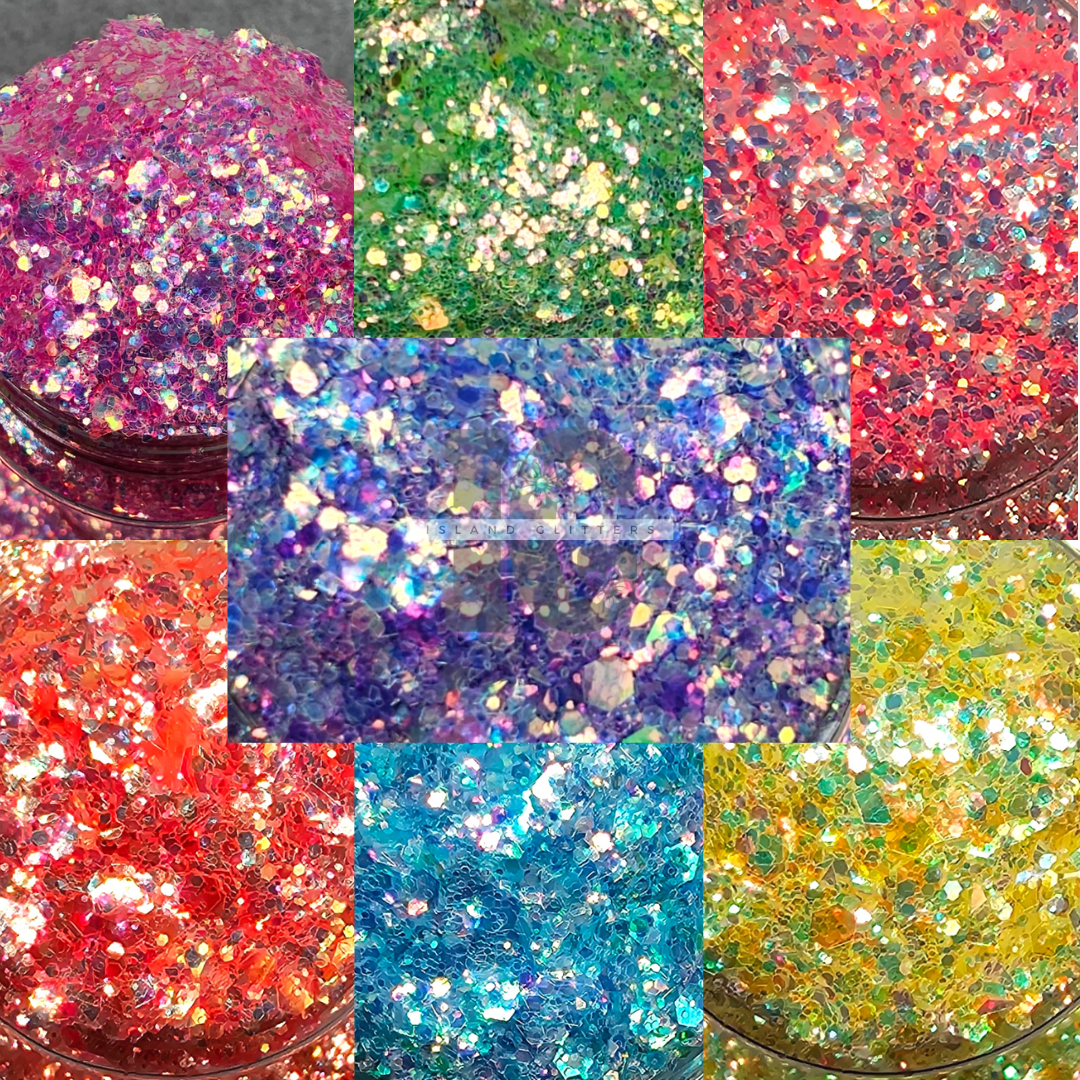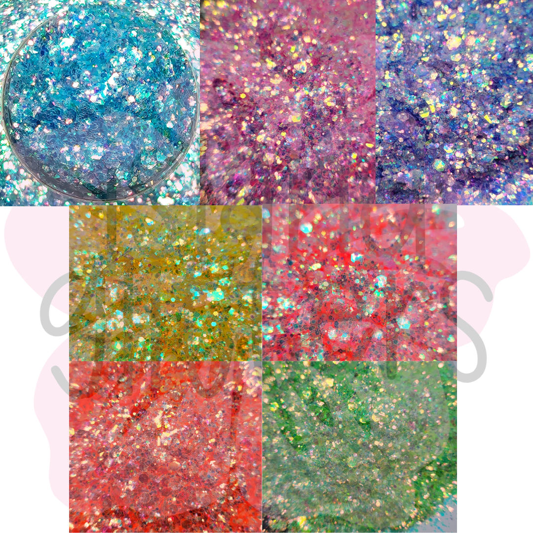 - All glitter photos and videos are taken under an led light to show details. Please see all photos, especially videos for a more accurate color.